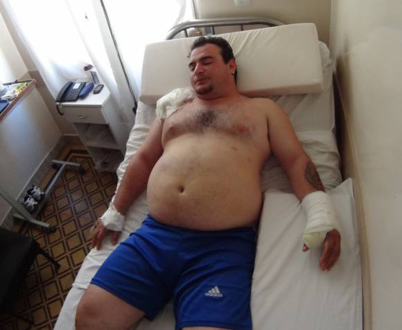 No recuerda cuántas detonaciones escuchó, sí tiene certeza que ‘me derrumbé y empecé a sentir algo calentito en la mano y en el hombro’, contó. Lo que percibía era la sangre y el ardor en la base del pulgar izquierdo y en el hombro derecho producto de las balas que le atravesaron. A todo eso el ladrón se subió a una moto roja 110cc y huyó a toda velocidad, con el dueño del negocio por detrás arrojándole piedras.