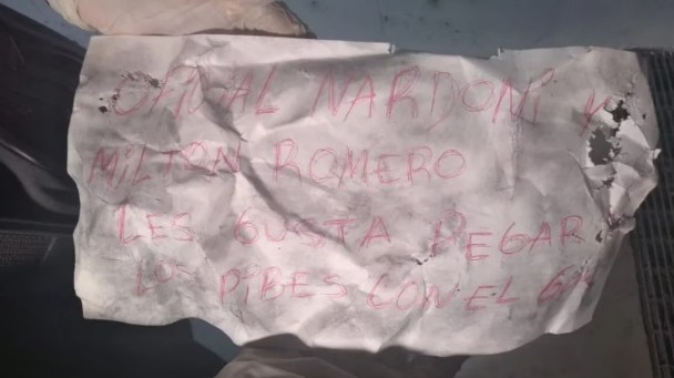 En el lugar se encontraron tres vainas servidas, un cargador con municiones calibre 9 milímetros y una nota, la cual apuntaba a la Guardia Operativa de la Restitución del Orden, una unidad interna del Servicio Penitenciario provincial. “Oficial Nardoni y Milton Romero les gusta pegar a los pibes con el GORO”, decía el escrito.