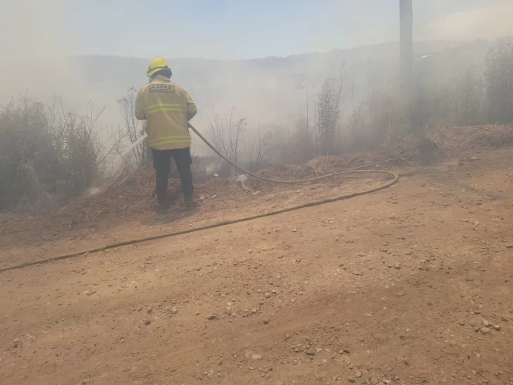 Dos dotaciones de Bomberos Voluntarios de Pocito y tres de la Policía, trabajaron en el lugar con el objetivo de sofocar las llamas y que la situación no pase a mayores.