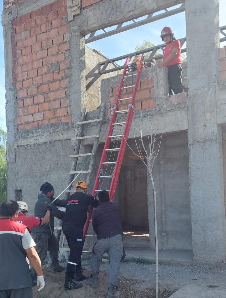 Personal de Bomberos socorrió a un obrero que sufrió un accidente laboral en el primer piso de la edificación que se emplaza dentro de un barrio privado, departamento Rivadavia.