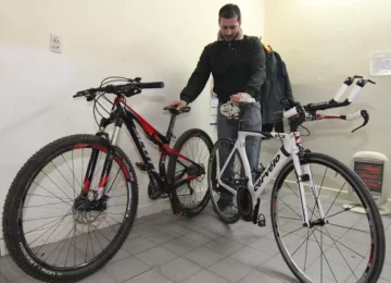 Policías de Robos y Hurtos recuperaron alrededor de la 1 de ayer en el barrio Las Moreras, Santa Lucía, dos bicicletas valuadas en unos $100.000 (una para triatlón y otra de montaña) que, junto con un iPod, una notebook, un reloj pulsera con GPS y dos mochilas, fueron robadas de la casa del deportista Humberto Martinez en pleno centro capitalino (Santiago del Estero Ignacio de la Roza), el último domingo entre las 18 y las 20, informaron ayer fuentes policiales. Las bicicletas las tenían dos muchachos que las abandonaron al verse perseguidos por los pesquisas.