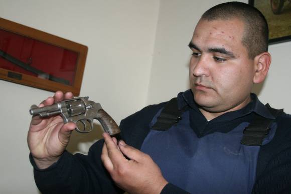 Policías de la comisaría 6ta. buscan desde el viernes en la noche a un hombre de apellido Manzur, porque en su casa de calle General Acha, al Norte de 5, en Rawson, secuestraron un revólver calibre 32 sin cartuchos, con el que había amenazado a su pareja, de apellido Romero, dijeron fuentes policiales.