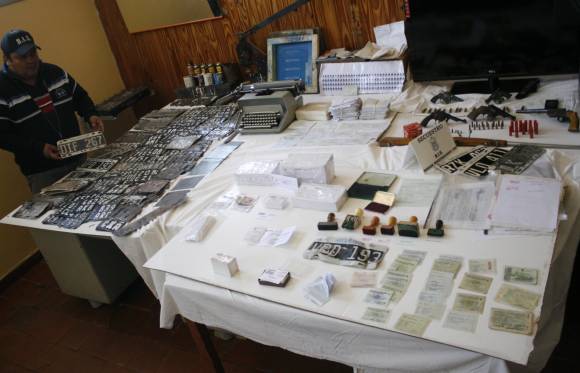 En los nuevos operativos, recuperaron 2 motos Honda Transalp 650cc sustraídas en San Juan en 2007 y 2009. Una estaba en una vivienda de Rivadavia y otra la tenía Antonio Lucero (27) en su casa de Pocito. Allí también incautaron una carabina calibre 22 con cartuchos, parlantes y un estéreo. En un taller de Chimbas secuestraron una camioneta Chevrolet S10 robada en abril en Mendoza y dejada por Soler para reparación. Y en una calle de Capital hallaron un Ford Fiesta sustraído en marzo pasado en esa misma provincia, indicaron en la Brigada Sur. En Rawson, detuvieron a Hugo Palacio (62), un gestor trucho que se cree ‘arreglaba’ los papeles de los autos robados. En su vivienda hallaron documentación y 3 armas con cartuchos (2 revólveres 32 y 22 y un pistolón). También en Rawson cayó Antonio González (69), el supuesto autor de las adulteraciones y fabricante de las patentes truchas, informó la Policía.