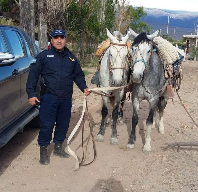Policías de las seccional 21ra, a cargo del comisario Vicente Álvarez, detuvieron ayer en su casa de Angualasto, Iglesia, a Mario César "Carne Amarga" Vega (40). Allí hallaron un caballo y una yegua que habían sido robados el pasado sábado de un corral ubicado detrás del Anfiteatro Buenaventura Luna, en Jáchal, dijeron fuentes policiales. Los animales, de 6 años, estaban en buen estado. Aparentemente los trasladó en una camioneta Toyota Hilux, que también se la secuestraron.