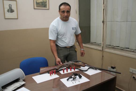 Un hombre de 32 años fue detenido por efectivos de la comisaría 17ma. después de que su mujer lo denunciara por golpearla tras un discusión familiar y también de intentar estrangularla con una soga a ella y su beba de seis meses en una casa en inmediaciones de Necochea y Centenario, Chimbas. Luego del arresto y de un allanamiento en esa vivienda, hallaron una escopeta calibre 16 con 7 cartuchos y un revólver calibre 22 con tres. El sujeto es investigado por amenazas agravadas y tenencia ilegal de armas, dijeron en la Policía.