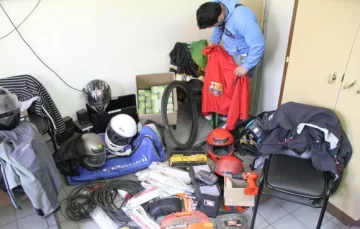 Los investigadores de Robos y Hurtos hicieron el operativo ayer en la mañana en una propiedad de calle Juan Jufré, cerca de Alem, y detuvieron a Luis ‘Malasuerte’ Flores, informaron en la Policía. En esa vivienda hallaron varios cascos de motociclistas, cubiertas de bicicletas y motos, juegos de llaves, taladros y otras máquinas, herramientas de mano, artículos eléctricos y otros efectos. Investigan si son producto de los robos a una ferretería y a un negocio de motos.