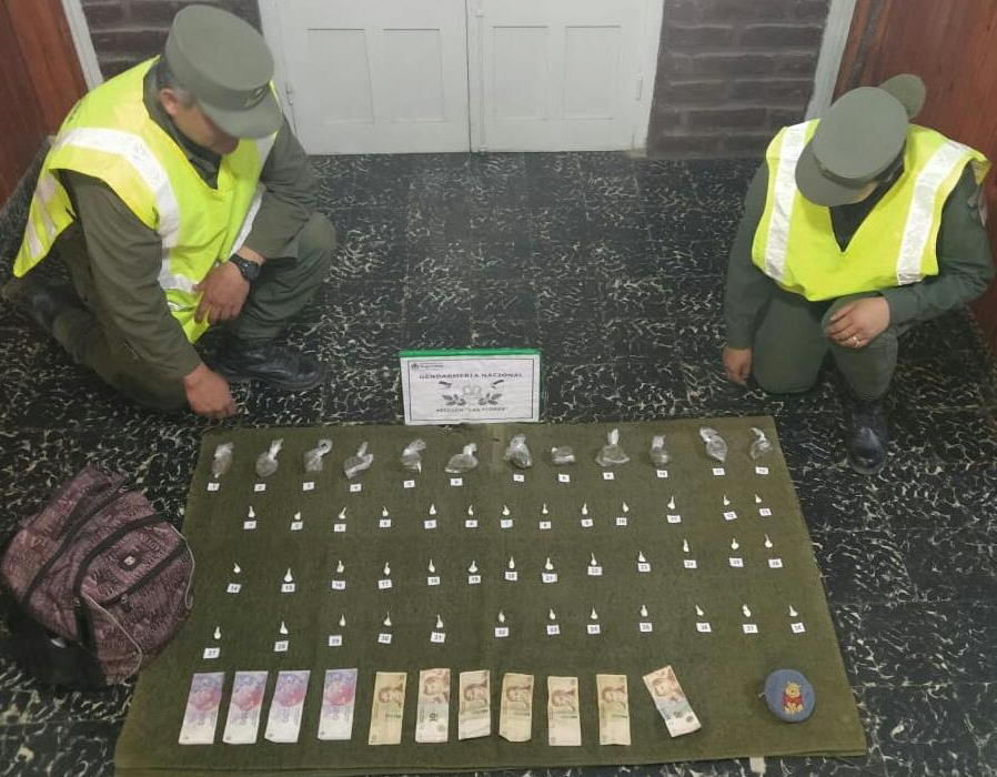 Gendarmes de la sección Las Flores detuvieron a una mujer que cursa un embarazo de 8 semanas que llevaba una mochila que en el interior tenía 280,6 gramos de marihuana dividida en 12 envoltorios, 38 dosis de cocaína por un peso de 38,3 gramos y 470 pesos en efectivo que serían producto de la venta de estupefacientes, dijeron fuentes de esa Fuerza. El procedimiento se realizó en horas de la tarde del pasado jueves, en el control de la Ruta 149, a la altura del paraje Alto del Colorado, en Iglesia. La detenida se desplazaba en una camioneta Ford F-100 que conducía un hombre mayor de edad que no quedó preso, pero sí supeditado a la causa. La mujer quedó a disposición de la Justicia Federal.