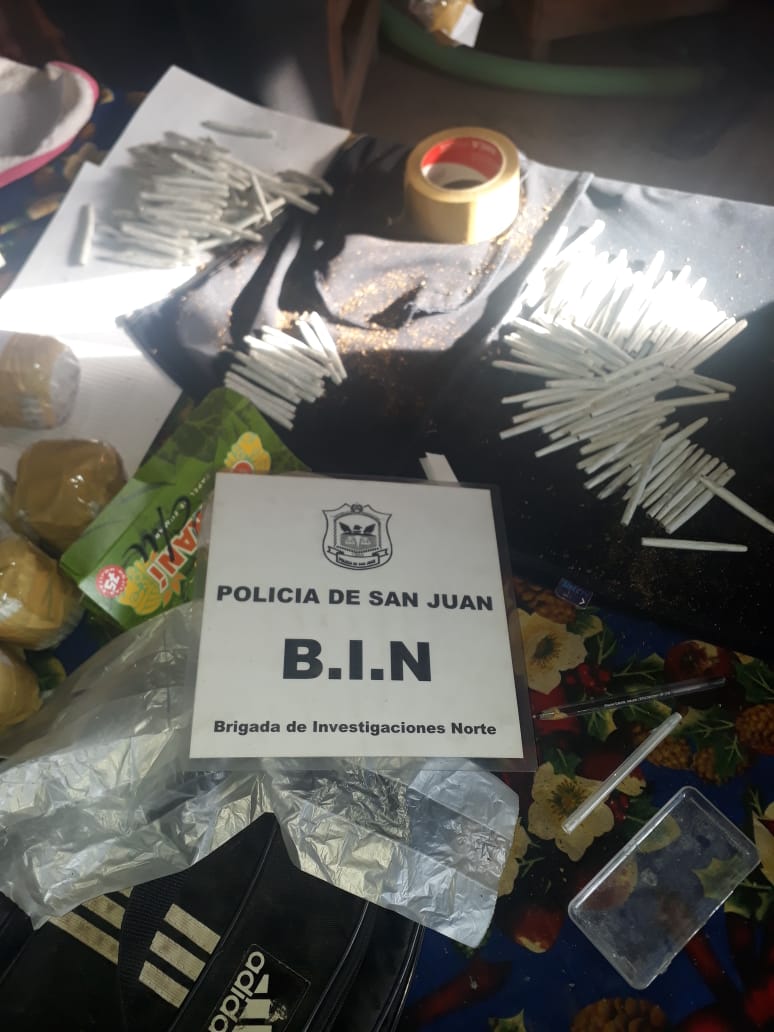 Por otro lado, también se secuestró un aparato "pica pica" de plástico, una caja con 17 paquetes de papel de lillos, 9 bolsas de nylon (iguales a las de los paquetes grandes) y cinta scotch.