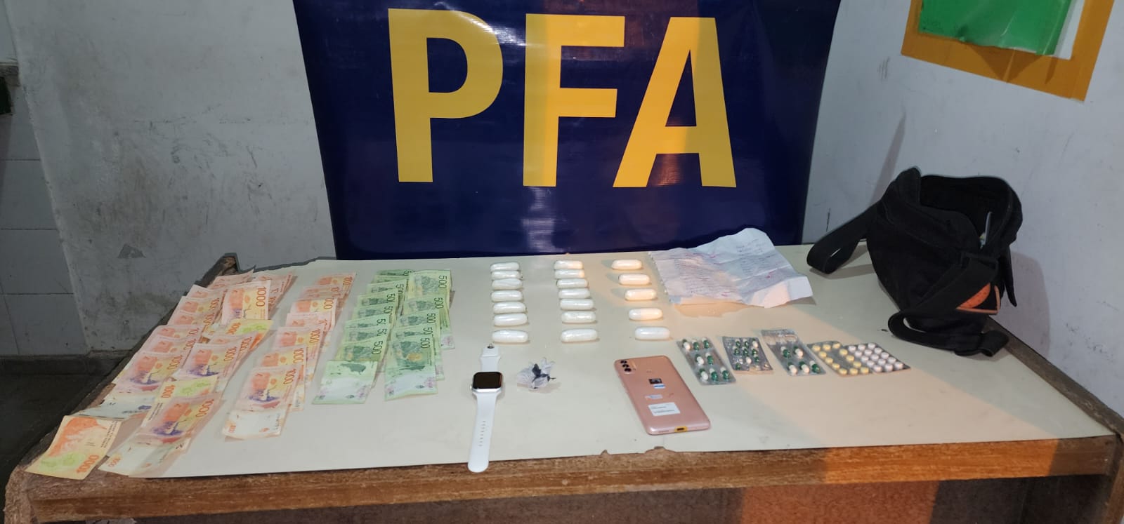 Personal de la Policía Federal Argentina detuvo en Sarmiento a una pareja oriunda de Mendoza que llevaba entre sus pertenencias 19 tizas de cocaína y pastillas. También les secuestraron celulares, dinero en efectivo y documentación, dijeron fuentes policiales.