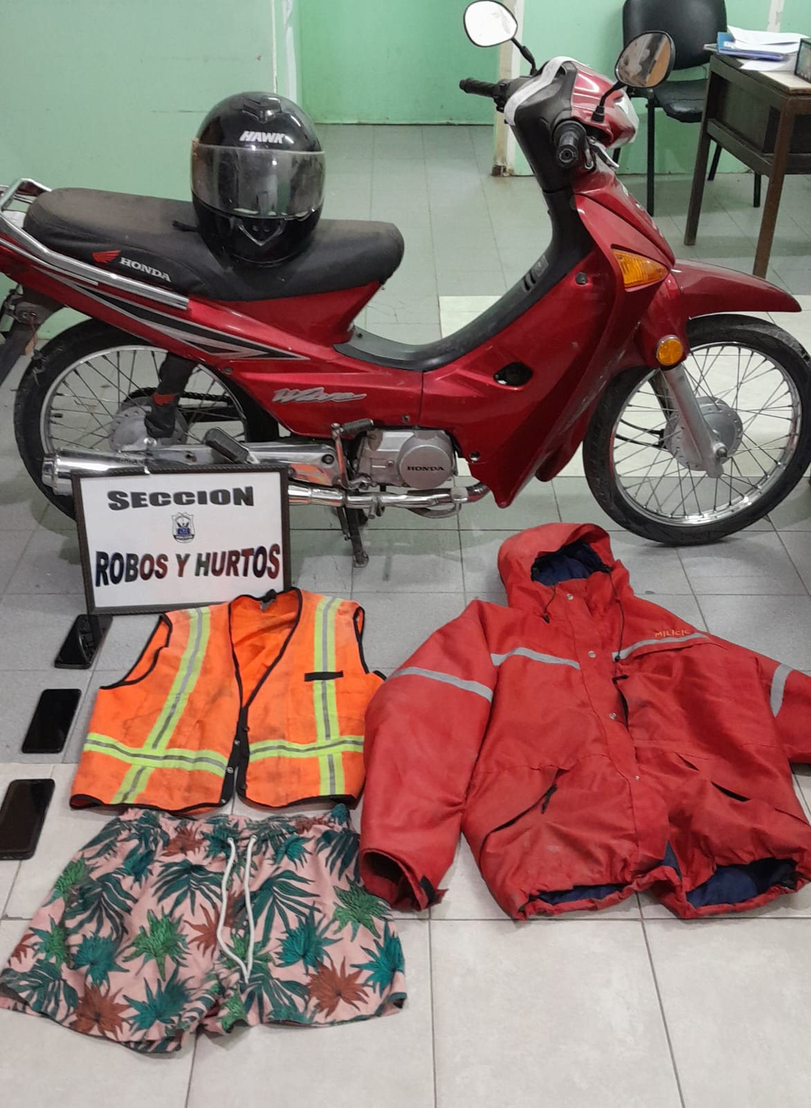 Los investigadores allanaron un domicilio situado en el Barrio Los Cardos, en Chimbas, y el otro del Lote Hogar N° 26, en Santa Lucia. Y detuvieron a "El Sapito" Guzmán, a quien le secuestraron prendas de vestir utilizadas en los robos, la motocicleta en la que se conducía y celulares que luego fueron reconocidos por las víctimas.