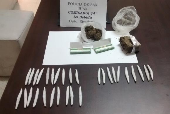Efectivos de la Comisaría 34ta detuvieron el viernes a las 20.40 a dos sujetos porque les incautaron 30 “porros” y 2 trozos de marihuana (todo pesó 199 g). Según informaron en la Policía, los sujetos son de apellido Pereyra (34) y López (29) y fueron interceptados tras una persecución en el interior del Barrio Nuevo Cuyo II, en La Bebida, Rivadavia. Ambos quedaron a disposición de la Justicia federal.