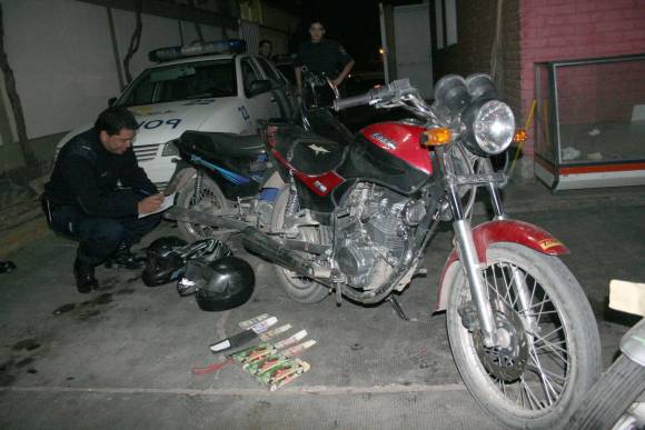 Ocurrió a las 19:15 cuando 4 ladrones irrumpieron a Avícola "La Esperanza" en calle Pellegrini, La Bebida. Amenazaron con una sevillana a la empleada y robaron $300, un casco y un celular. Después huyeron en dos motos. A los minutos, policías de la Seccional 13ra. los detuvieron en calle Dr. Ortega, cerca de Meglioli, Rawson. Los sospechosos son Pereyra (22), Villarreal (24), Ontivero (27) y Díaz Torres (28), quienes se movilizaban en una moto Maverick 110cc. y otra Zanella 125cc.