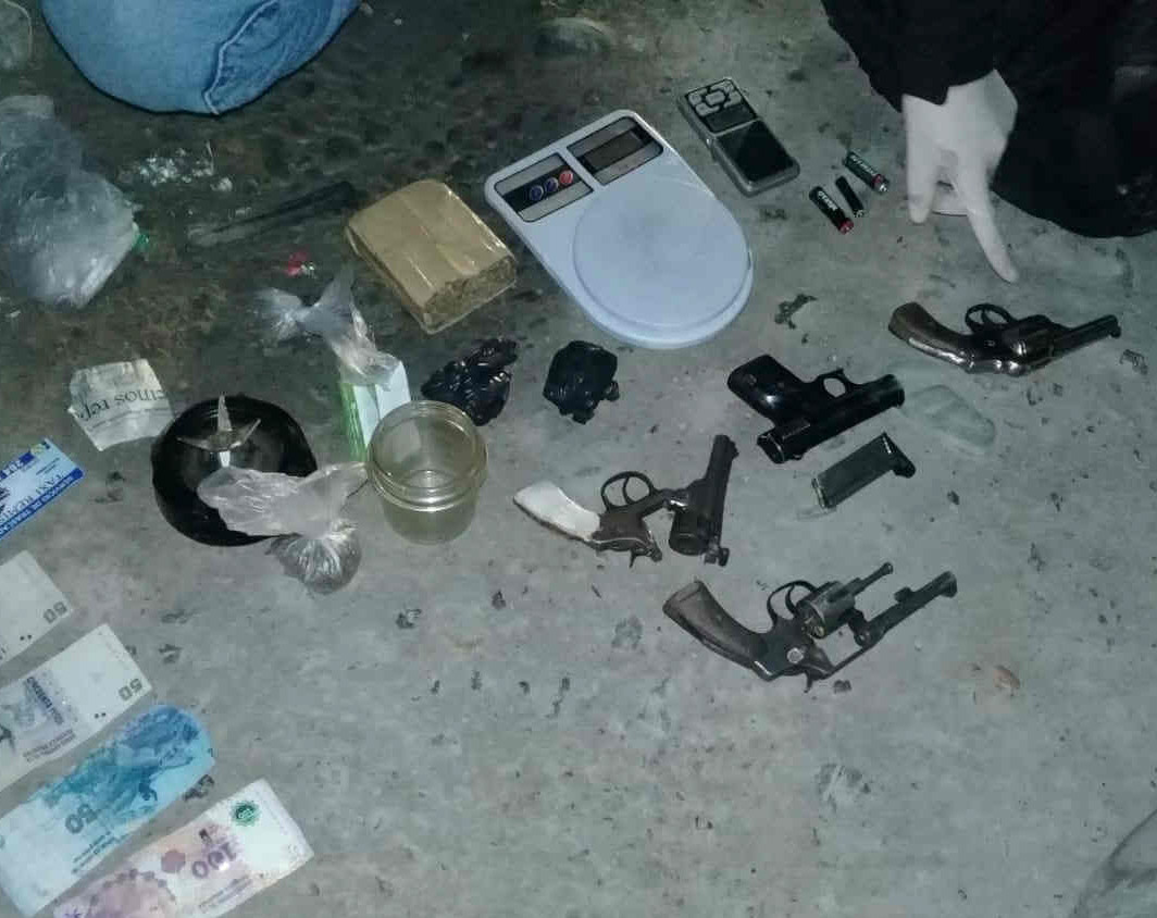 A las 4 de ayer, cuatro sospechosos fueron detenidos por policías de la seccional 21ra de Jáchal con una pistola calibre 22, 3 revólveres calibres 32, 38 y 39.30, 350 g de marihuana y una balanza. Gabriel Rapaport (49), José Fredes Pereira (35), Juan Manrique (34) y Mario Lescano Rosales (20) fueron sorprendidos en inmediaciones de Ruta 150 y Avenida Perón. En la Fuerza suponen que iban a asaltar una estación de servicio cercana. En el operativo participó Gendarmería.