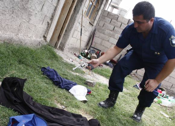 Dos jóvenes de 18 años fueron perseguidos y detenidos por policías del Comando Radioeléctrico (el oficial Germán Riveros y el cabo Sandro Moya) en los fondos de una casa del Lote 2 de Abril, Rawson, ayer a las 12.30. Allí, uno de ellos, de apellido Gélvez, fue herido con balas de goma cuando sacaba de su cintura un revólver calibre 38 sin cartuchos, informaron ayer fuentes policiales. Los sospechosos, Gélvez y Ormeño, habían escapado al ser sorprendidos por personal de la subcomisaría de Villa Hipódromo, que llegaron a un comercio de Necochea y Doctor Ortega, donde los vieron ‘merodeando’, dijeron en la Policía.