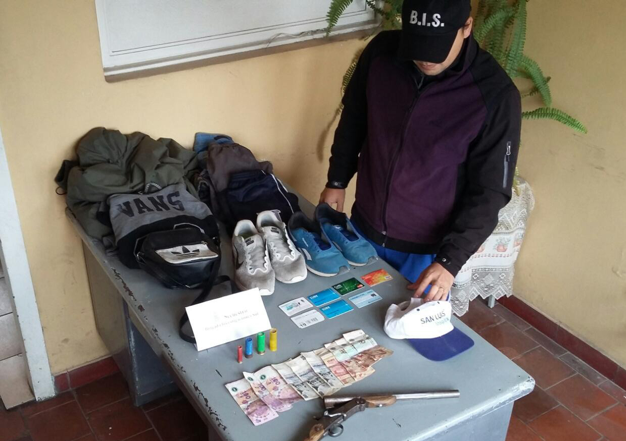 Los efectivos de la Brigada Sur secuestraron 4 motos, marihuana, un arma de fuego, ropa, tarjetas de débito, carteras y dinero en efectivo.