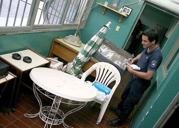 Mientras la familia descansaba, ingresaron a un sector de la casa y sacaron 5 cajas de cerámicos, una estufa, una enceradora, una caja de grifería y una juego de silla y mesa de jardín, dijo el comisario Enrique Villafañe. Llevaron todo a un baldío. Cuando sacaban la sombrilla, la dueña los vio y llamó a la policía. Fue entonces que aparecieron el oficial Cristian Atencio y el agente Jesús Galarza, de la Motorizada Nº3, y los persiguieron.