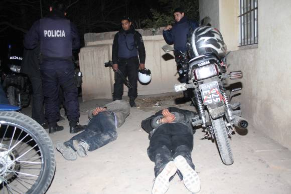 Dos sujetos de 23 años fueron detenidos anoche en Urquiza, 100 metros al Sur de avenida Córdoba, luego de ser perseguidos por el oficial Jorge Pérez Ríos y agente Jorge Rodríguez (Motorizada III) desde el cruce con Córdoba y Paula A. de Sarmiento, en Capital. Según la policía, Alberto "Tito" Bordón y Matías Pereyra, fueron filmados, igual que la Yamaha 115cc. en la que cayeron, cuando robaban una notebook en Sargento Cabral casi Paula A. de Sarmiento. Y eran buscados además por múltiples robos y arrebatos, dijeron en la policía.