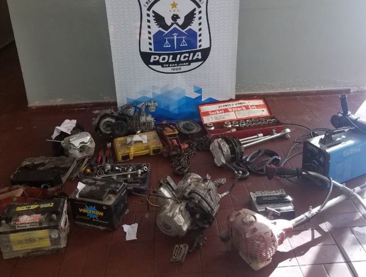 Policías de la seccional 21ra. de Jáchal apresaron a Luciano "Cuchillo" Pérez y un chico de 15 años, sospechados de haberse metido a un taller para robar. Luego de encarar los allanamientos ordenados por el juez Javier Alonso, los pesquisas encontraron las cosas denunciadas como robadas y otras, como amoladoras, motores y otros aparatos que podrían también ser sustraídas, informó la Policía. El chico será sometido a la Justicia de Menores, pero por ley es inimputable.