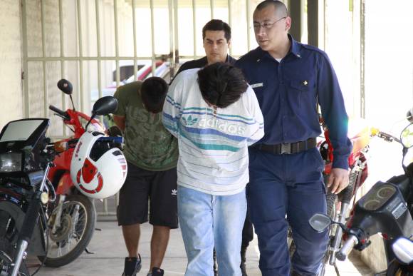 Policías del Comando Radioeléctrico al mando del oficial Julio Aballay, con apoyo de la seccional 27ma. y la Base Motorizada III, apresaron a las 4.40 de ayer en el Lote 40, Capital, a cuatro sujetos de apellidos Riveros, Farías, González y Bustos, sospechados de atacar armados con cuchillos, puntas y destornilladores a tres empleados de una lomoteca para robarles ropa y celulares, en Rivadavia. Y por emplear igual modus operandi para sustraer un celular y 100 pesos a otro joven en Capital, dijeron fuentes policiales.