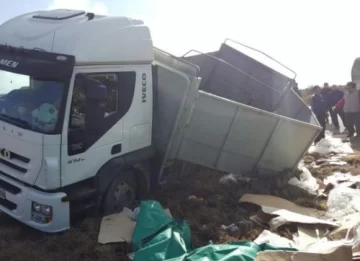 San Luis.- Un vuelco se produjo este martes en el paraje Hualtarán, donde está la rotonda de acceso al Parque Nacional Sierras de Las Quijadas, San Luis, y que involucró a un camión que había partido de San Juan.