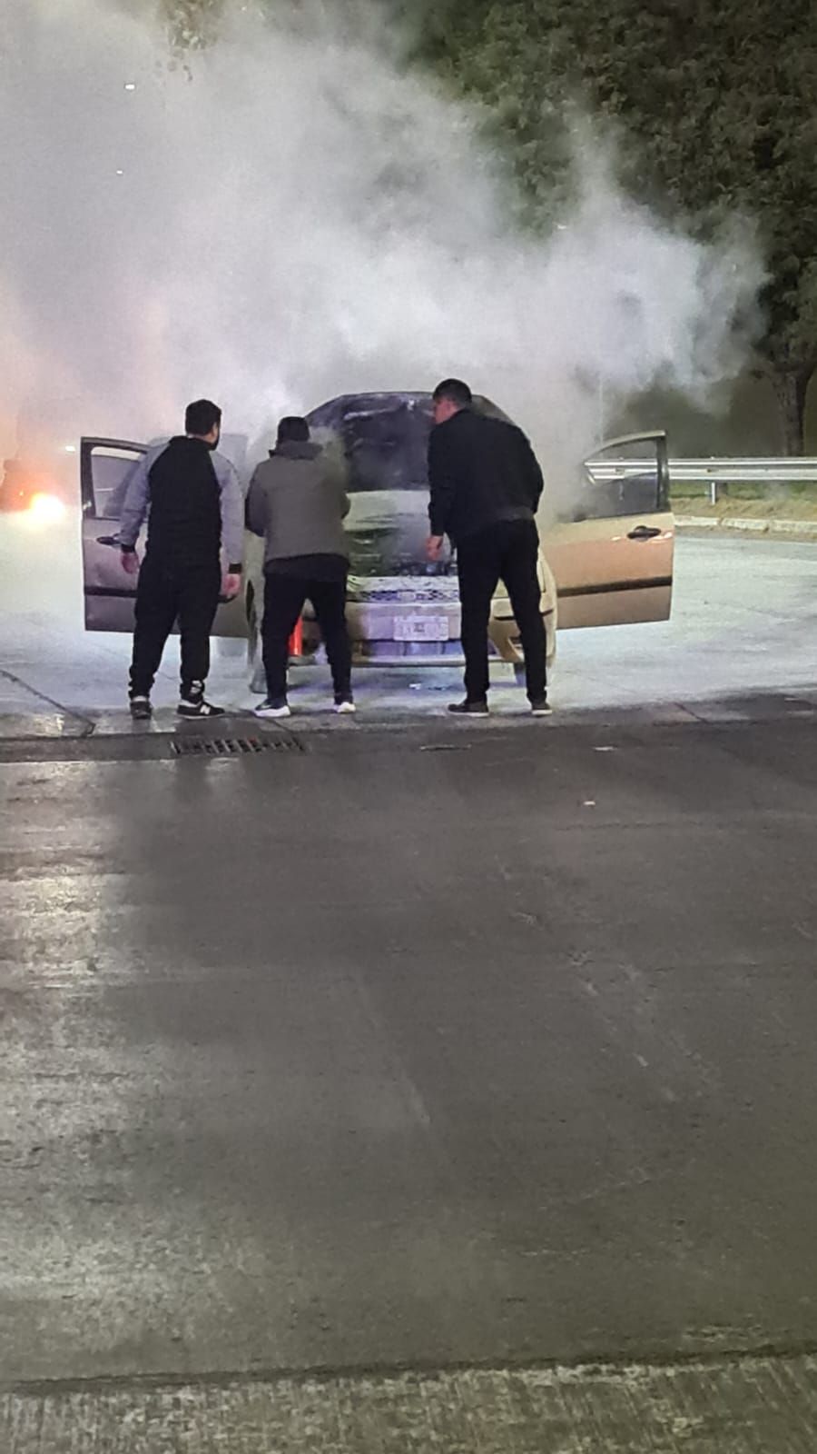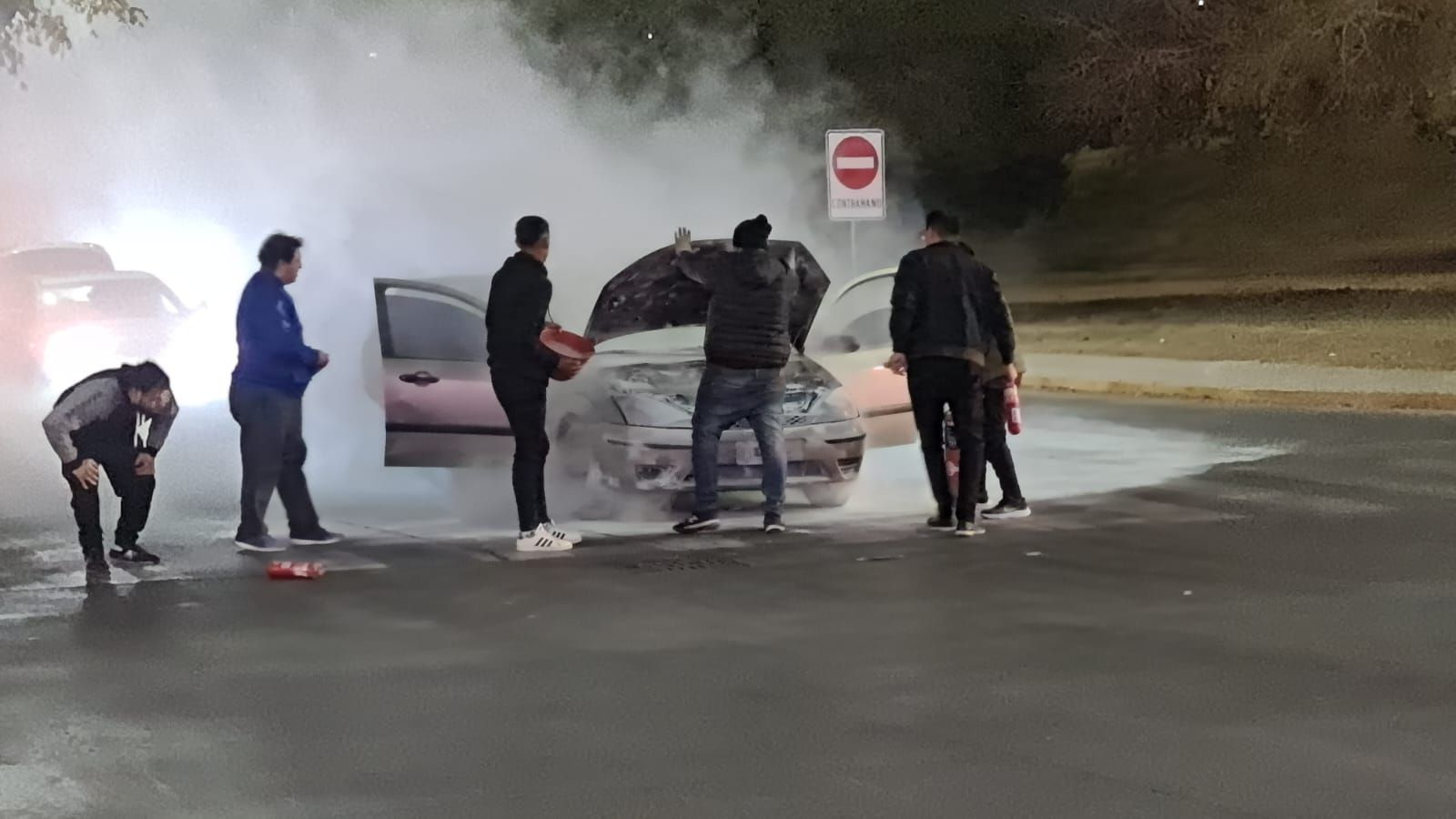 Personas que transitaban por la zona colaboraron con el conductor del auto incendiado para extinguir las llamas, objetivo que lograron luego de algunos minutos.