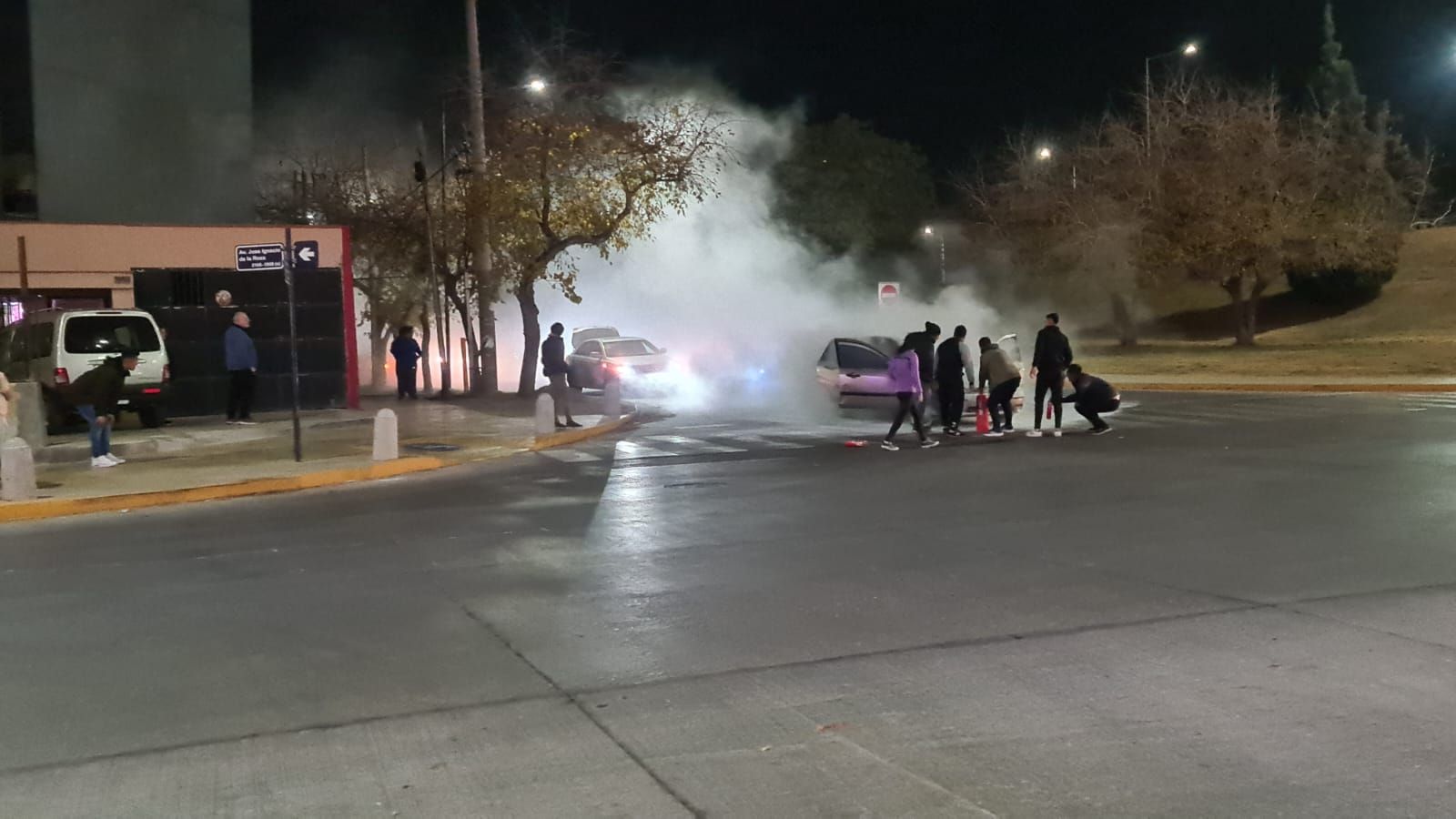 Según testigos del hecho, un Ford Focus se prendió fuego aparentemente por un cortocircuito en el Lateral Oeste de Avenida Circunvalación e Ignacio de la Roza y la situación generó gran temor entre los transeúntes debido a que en ese sector hay un lugar de expendio de combustibles.