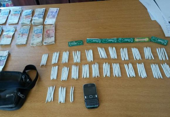 Pesquisas de Robos y Hurtos dirigidos por el subcomisario Jorge Carrizo y el principal Julio Aballay, persiguieron y atraparon ayer a Héctor Hugo González (22, alias “Gordo Huguito”), porque al ir a buscarlo en su casa por un robo, huyó por una ventana y arrojó una bolsa en la que tenía 122 porros y $1.518, informó la Policía.