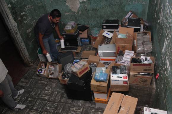 Policías de la seccional 6ta. al mando del comisario inspector Julio Allí hallaron 3.300 copias truchas, 26 lectogradoras, 2 monitores, 5 impresoras multifunción, 7 resmas de papel, 800 folios de plástico, 20 envases con tintas varias, 500 discos vírgenes, 300 cajas plásticas para guardarlos, entre otras cosas. No fue todo: a un sujeto, Godoy (24, pareja de una prima de Mercado) le hallaron en su casa de Villa Aberastain, Pocito, una PC, 4 lectograbadoras, 350 películas truchas, 200 discos vírgenes, cartuchos con tintas y cuadernos con anotaciones, dijeron en la seccional.