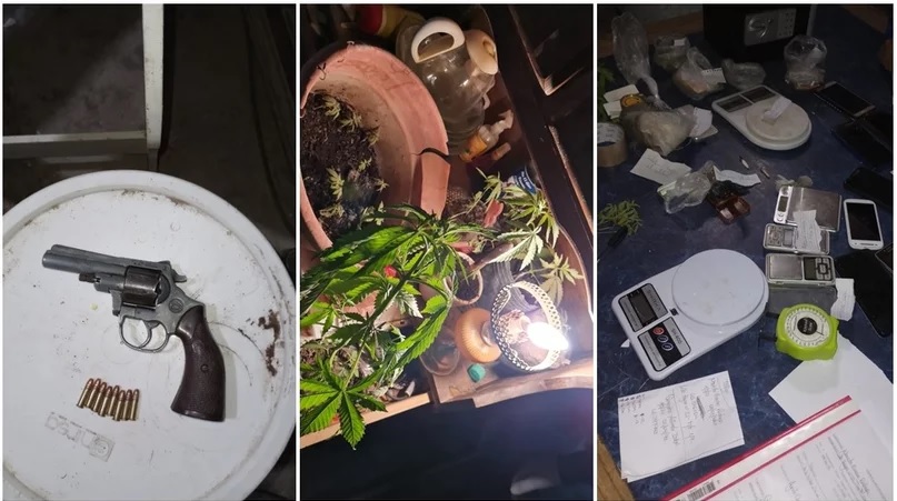 Se trata de un revólver calibre 22 y una tumbera, ambas aptas para el disparo. También hallaron 16 proyectiles calibre 22, de los cuales 6 se encontraban alojados en el tambor del revólver, y 6 cartuchos 12/70 tipo AT.
