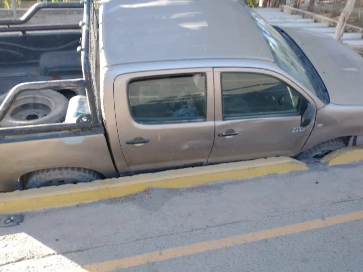 La camioneta detenida con dos ruedas incrusutadas en la acequia de la calle Santo Domingo, en Rodeo -departamento Iglesia-, fue una postal inusual para los transeúntes que iban a votar en la mañana de este domingo.