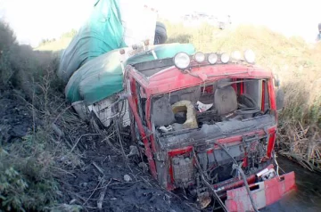 La primera imagen que vio Gustavo Barrera (26) cuando corrió desde su casa hasta el accidente, fue dantesca: el camión Fiat Iveco en medio del profundo zanjón, sobre sus ruedas, con el techo de la cabina arrancado de cuajo por la fuerza del impacto y el acoplado aplastando parte del chásis. Y en el medio, un drama: Federico Irranea (31), que manejaba el rodado, ensangrentado y luchando desesperadamente por sacar a su novia malherida, Cecilia Analía Albornoz (21 años, salteña), que colgaba del habitáculo. Ambos terminaron allí luego de que el camión cargado con 3.722 damajuanas y bolsas vacías los llevara por delante. El mismo chofer le dijo a Barrera que todo pasó porque le falló la dirección cuando revasaba a un ciclista que transitaba por la misma dirección, por calle La Plata al Sur, entre 7 y 8, en 25 de Mayo. Apenas lo sobrepasó, perdió el control y se fue sin remedio hacia su mano derecha, precisó Barrera.
