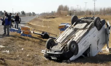 Una camioneta Fiat Fiorino que tiraba un acoplado cargado con antenas de DirecTv volcó ayer a eso de las 15.30 a un costado de la ruta nacional 40 y calle 13, en Pocito. David Ricardo Miranda (37), el conductor, sorprendentemente salió ileso de lo que pudo ser una tragedia por la rodada que dio el vehículo, informaron en la Seccional 7ma. El hombre regresaba con esos equipos de Mendoza. Según dijo, perdió el control del vehículo cuando pasó por un badén en ese cruce y el acoplado perdió la estabilidad.