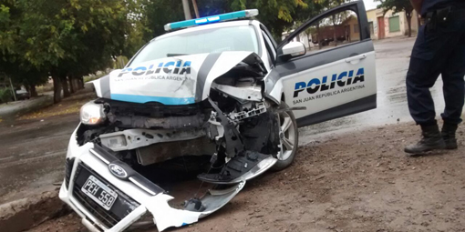San Juan.- Una intensa persecución de personal de la Regional Este terminó con un patrullero destrozado en su parte frontal. Todo sucedió esta mañana bien temprano, cuando un móvil se topó con el ‘Pollo’ Ochoa, un conocido delincuente caucetero, junto a unos cómplices.