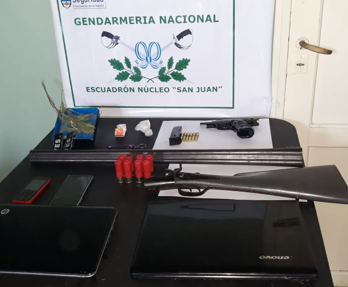 Personal de Gendarmería Nacional realizó ayer allanamientos simultáneos en Capital, Rawson, Pocito, Calingasta y Jáchal, al cabo de los cuales se detuvo a cinco personas, complicadas por escuchas telefónicas y también por el secuestro de cocaína, marihuana (no se precisaron cantidades) una escopeta, un revólver y varios cartuchos, informaron fuentes de esa Fuerza.