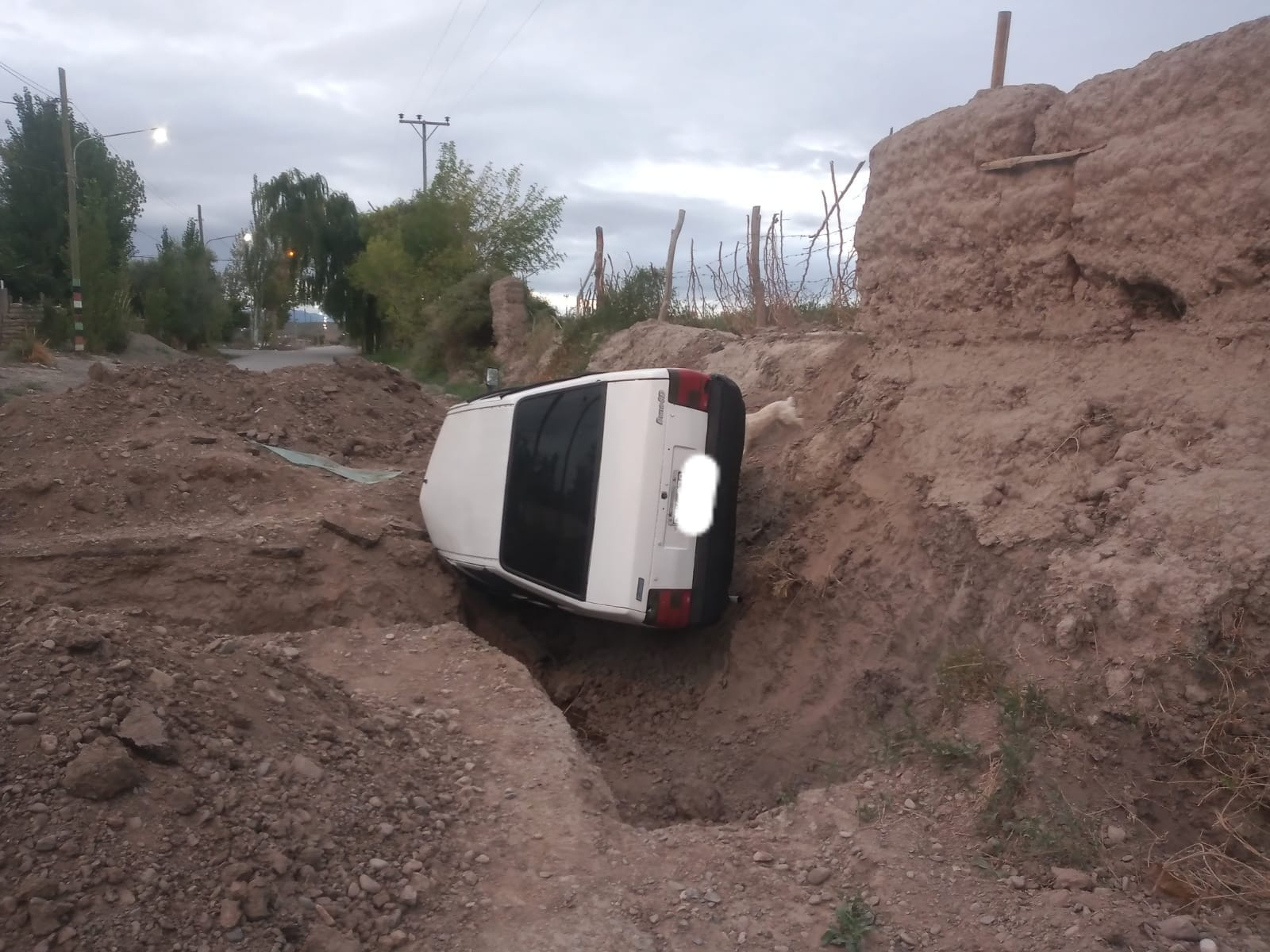 Un tremendo accidente ocurrió a primera hora de la mañana de este martes en Iglesia, cuando un auto terminó cayendo a la zanja de una obra que no estaba señalizada. Cuando la Policía llegó al lugar, el dueño del vehículo ya no estaba.