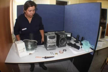 Fue una mujer la que llamó a los policías por los ruidos que escuchaba en la casa de su vecina Alicia Rojas (46) en Fermín Rodríguez 272, en la Villa Cenobia Bustos, Rawson. Cuando el oficial Jesús Pedroza llegó al lugar un móvil del Comando Radioeléctrico, vio la puerta violentada, pidió apoyo e ingresó a la casa de dos plantas, donde se topó con un ladrón armado con un cuchillo que lo enfrentó, pero que no tuvo escape porque enseguida llegaron también el oficial Julio Aballay y el sargento Ariel Orihuela. Según la policía, al sospechoso Jonathan Martínez (27 años, con antecedentes) le secuestraron a la 1.40 de ayer un reloj, una pulsera y todo lo que había embalado mientras revolvía la casa: una multiprocesadora, un minicomponente y una plancha para el pelo.
