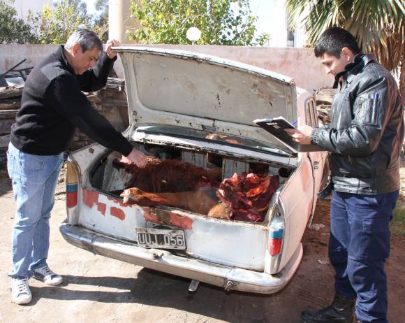 Era el Peugeot 404 y apenas detuvo la marcha, un sujeto se bajó y logró escapar, pero el otro no tuvo la misma suerte. Ese sospechoso fue identificado como Roberto Pérez, de 45 años y con domicilio en la Villa Ros, Chimbas, informó la Policía. Al revisar el auto, los efectivos se toparon con los restos de dos caballos a los cuales les faltaba la cabeza. Más tarde, la Policía se enteró que esos animales eran de raza y que pertenecían a un hombre que tiene una finca en el departamento, señalaron las fuentes.