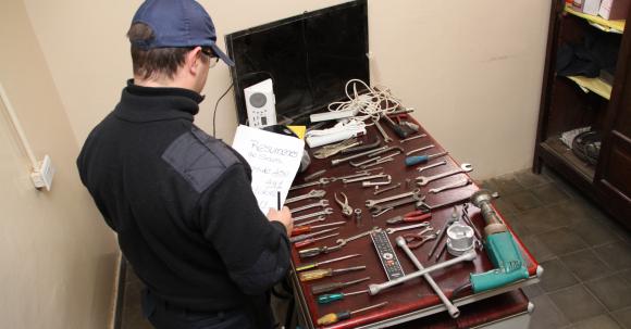 Un sujeto de 18 años fue apresado ayer en la mañana por efectivos de la Comisaría 24ta con 2 amoladoras, 2 agujereadoras, una radio, partes de motor, 40 llaves fijas, 20 destornilladores y un TV LCD de 32’ que le sustrajo en la madrugada del taller y la vivienda de dos vecinos suyos en la esquina de Lemos y Perona, Rawson. Según la Policía, el detenido es Carlos Torres y tenía ocultas las cosas dentro de un pozo tapado con ramas en el fondo de su vivienda.
