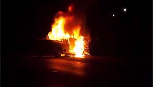 San Juan, 12 de septiembre.- Dos jóvenes que viajaban borrachos en una camioneta protagonizaron un violento accidente al impactar de lleno contra un pilar. El vehículo terminó envuelto en llamas.