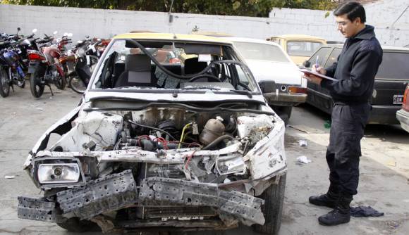Un joven motociclista terminó a las 4.45 de ayer con el tobillo derecho quebrado, al ser arrollado por el chofer de un Renault 9 (foto) en ruta 279, frente al barrio Niquizanga, Caucete. La herida más grave la sufrió Nahuel Varela (23) que guiaba una moto Motomel 200cc.
