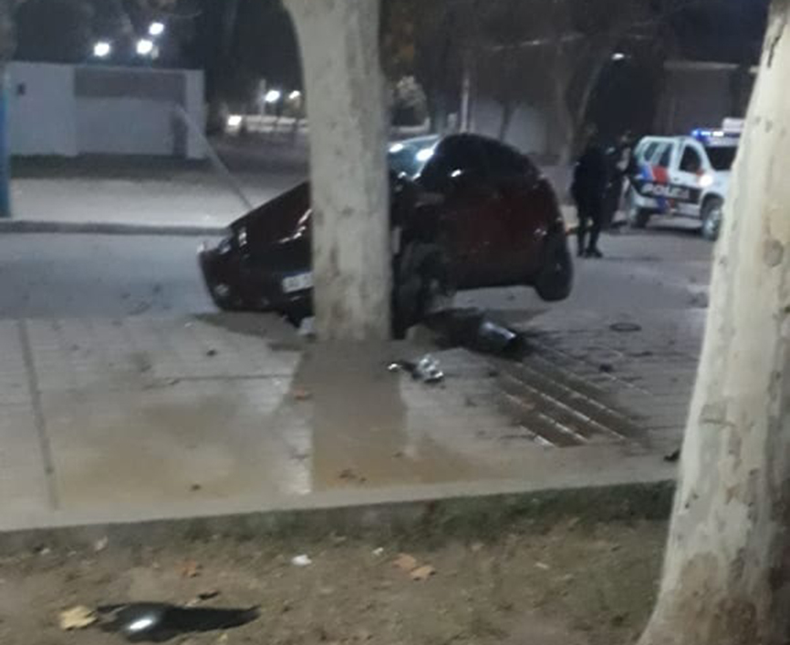 Cuatro jóvenes abordo de un Ford Fiesta se salvaron de lo peor luego de que Facundo Miranda (21), perdiera el control y se estrellaran contra un árbol, a eso de las 5.10 de ayer, en Juan José Bustos y San Martín, Caucete. Tanto Miranda como sus acompañantes, Matías Agüero (19), Mariano Martín (19) y Michael Molina (23), fueron trasladados al hospital con lesiones leves, informó la Policía.