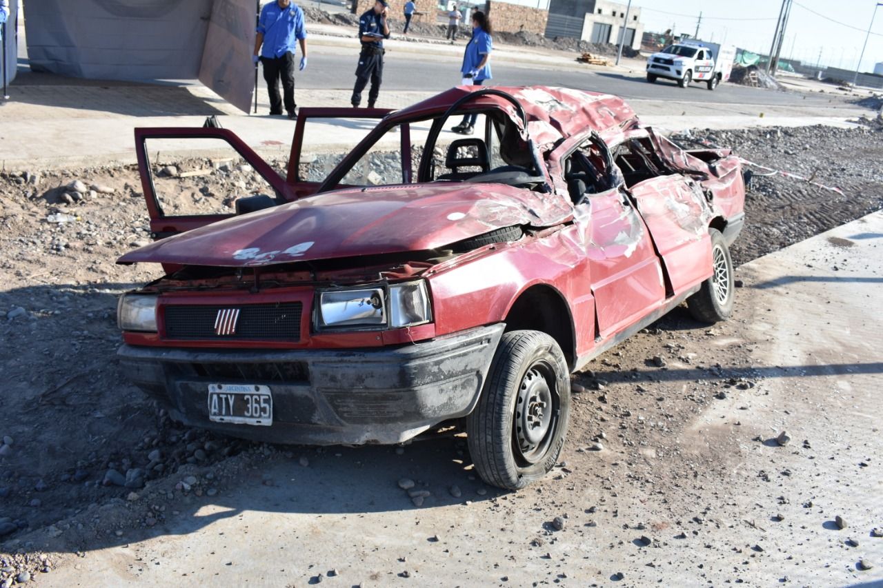 Cerca de las 7 de la mañana de ayer, un Fiat Duna y un Peugeot Partner chocaron y volcaron en inmediaciones de la Costanera entre Salta y Centenario, Chimbas, a metros de la entrada del predio ferial en construcción, provocando la muerte de tres personas, dos mujeres y un hombre, y dejando seis heridos. Según informaron fuentes policiales, todo ocurrió cuando el Fiat Duna, que circulaba en dirección oeste por Centenario, se encontró de frente contra la camioneta Peugeot Partner, que circulaba en dirección este por la misma calle. Al intentar esquivarse, ambos vehículos impactaron de costado, provocando que ambos volcaran y quedaran tendidos a la orilla de la calle a unos 100 metros de distancia.