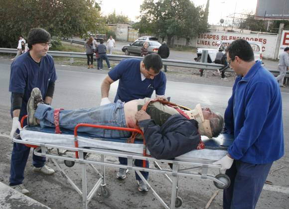 Un motociclista perdió ayer tarde el control de su moto Motomel 200cc al tomar la curva de la rotonda del Acceso Sur en Trinidad, Capital, y terminó estrellándose contra el guardarrail y cayendo hacia un costado de la avenida de Circunvalación. Rolando Azcurra (56) sufrió traumatismo abdominal y quedó internado en el Hospital Rawson.