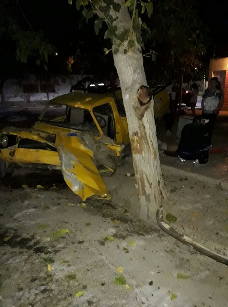 Según confirmaron desde la Comisaría Novena, el accidente ocurrió esta madrugada en calles Juan Jufré y Alberdi, en Caucete, cuando la camioneta Peugeot 504 terminó contra el árbol.