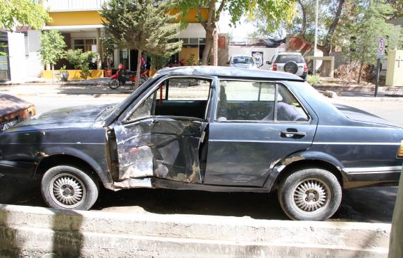 Un adolescente de 16 años en moto se “estampó” contra la puerta de un auto el jueves en el cruce de Tucumán y Rodríguez, Chimbas. El accidente sucedió a las 22 y el chico, llamado Omar Esquivel (16), sufrió laceración de laringe, fractura expuesta en pierna derecha y graves heridas en el resto del cuerpo, informó la Policía. El adolescente, que llevaba casco, transitaba por Tucumán de Norte a Sur cuando chocó contra el Volkswagen Senda guiado por Fabián Lara (29), informaron en la Seccional 17ma.