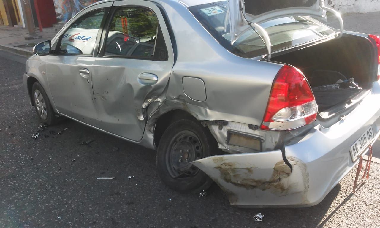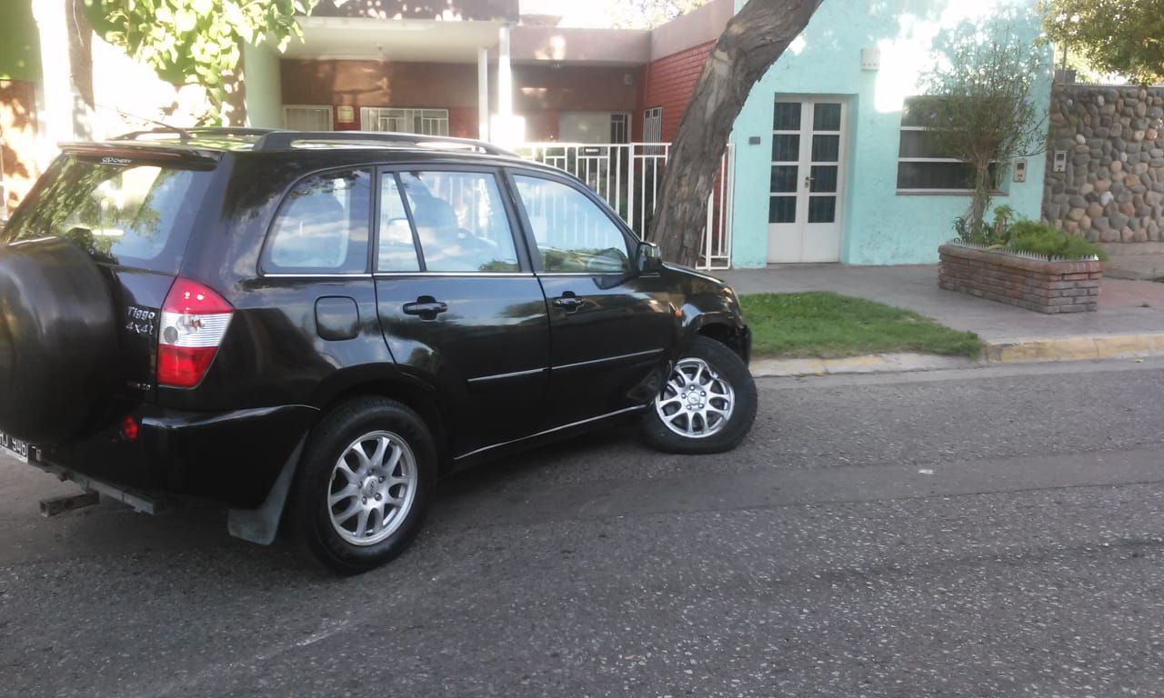 Por motivos que se desconocen, una camioneta Chery Tiggo negra impactó contra un Toyota que estaba estacionado, dejando daños materiales de consideración.