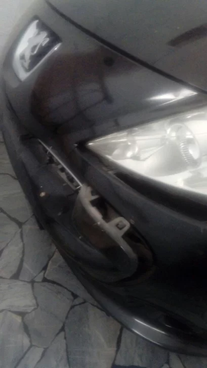 Por el impacto, una de las ópticas, el electro, el guardabarro izquierdo y el paragolpes delantero del Peugeot 207 quedaron destruidos. Según la víctima, testigos le contaron que una camioneta Ford Ranger doble cabina blanca fue la que embistió su auto.
