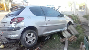 San Juan 8 de marzo.- Esta mañana, aproximadamente a las 8:30 un Peugeot 206 gris perdió el control y terminó chocando un parripollo y parte de una verdulería, terminando en la cuneta. El hecho ocurrió en calle Benavidez al 853 (o) y según relataron lectores de Diario de Cuyo Online, el hombre que conducía el automóvil estaba vestido con el uniforme policial.