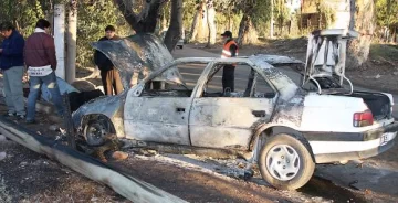 Esto pasó ayer a las 6:20 de la mañana, cuando un Peugeot 405 chocó a un costado de calle Oro, en Chimbas, y a los segundos se prendió fuego. El conductor alcanzó a salir a tiempo, pero el coche quedó completamente destruido por las llamas.