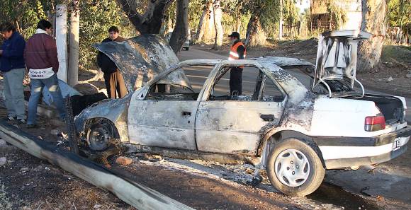 Se escuchó un gran estruendo. Luis Villegas, que dormía, se despertó creyendo que ladrones estaban rompiendo la puerta de su casa. Salió como pudo hasta el patio delantero y entonces vio unas llamaradas en la entrada. "Pensé que alguien había prendido fuego al árbol. Después, me di cuenta que era otra cosa….", relató. Ni eran ladrones ni el árbol que estaba ardiendo. El tremendo ruido que sintió era de un auto que acababa de estrellarse contra un poste, al que tiró junto al portón y al alambrado de su propiedad. Y el fuego que veía, venía del propio vehículo envuelto en llamas.